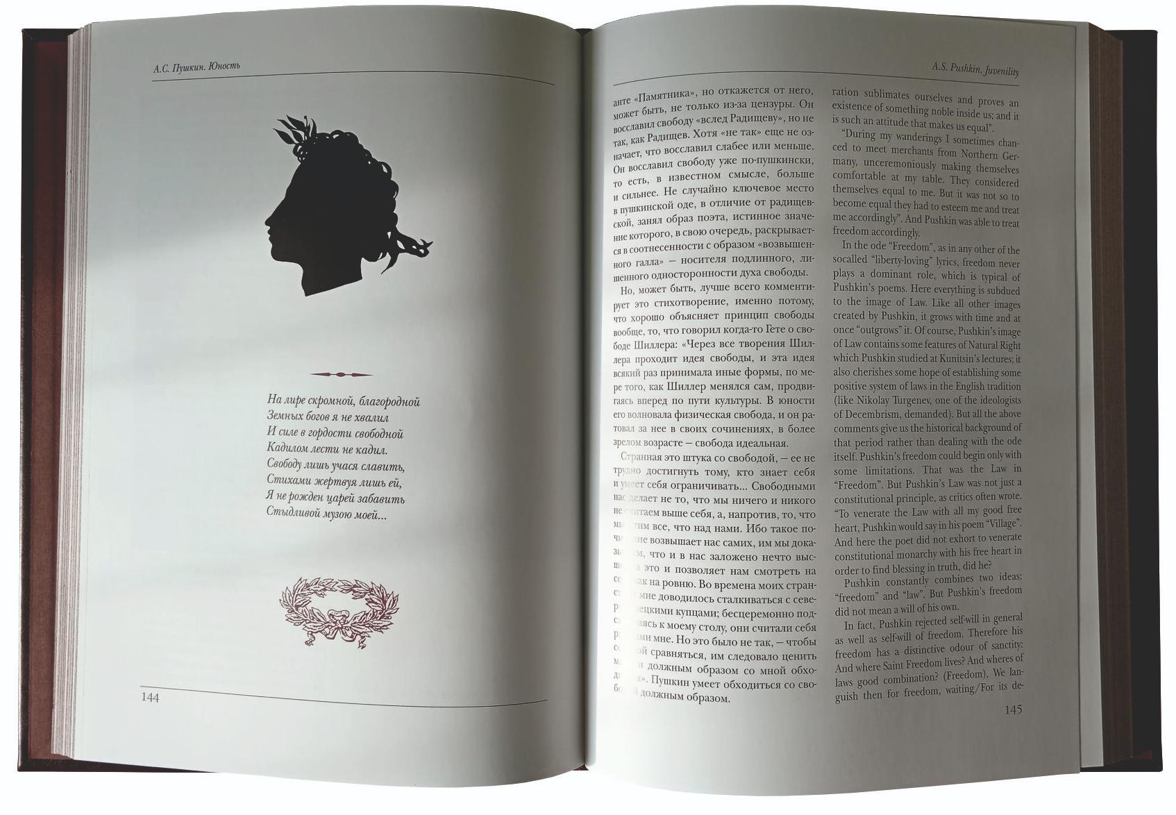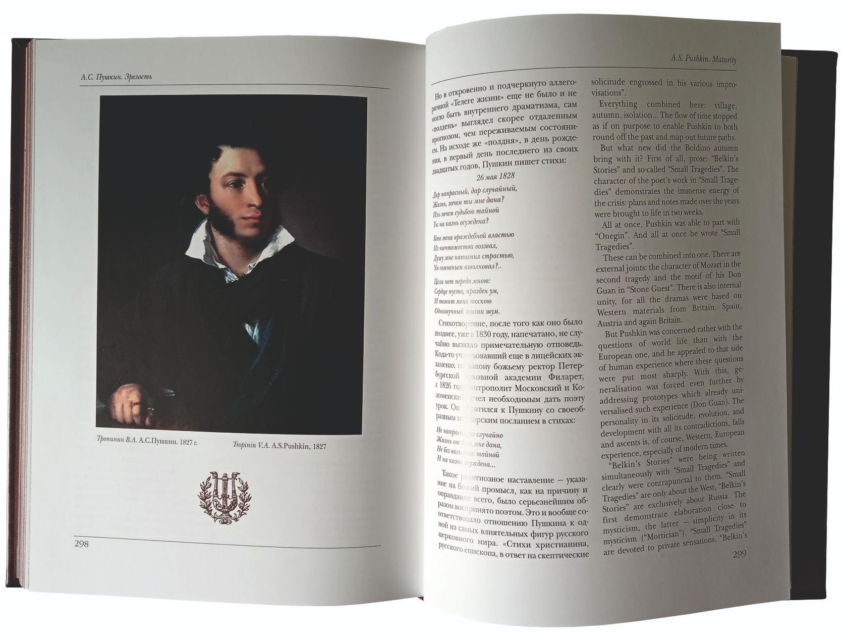 Издание признано лучшей книгой России 1999 года. Написанная известным литературоведом Н. Скатовым биография поэта читается как захватывающий детектив и содержит различные интересные факты. В издание также включены лучшие стихотворения А.С. Пушкина, цветные репродукции картин кисти современных ему художников, многочисленные материалы, позволяющие наглядно представить ту эпоху (более 700 иллюстраций). Текст и подписи под иллюстрациями на двух языках – русском и английском.