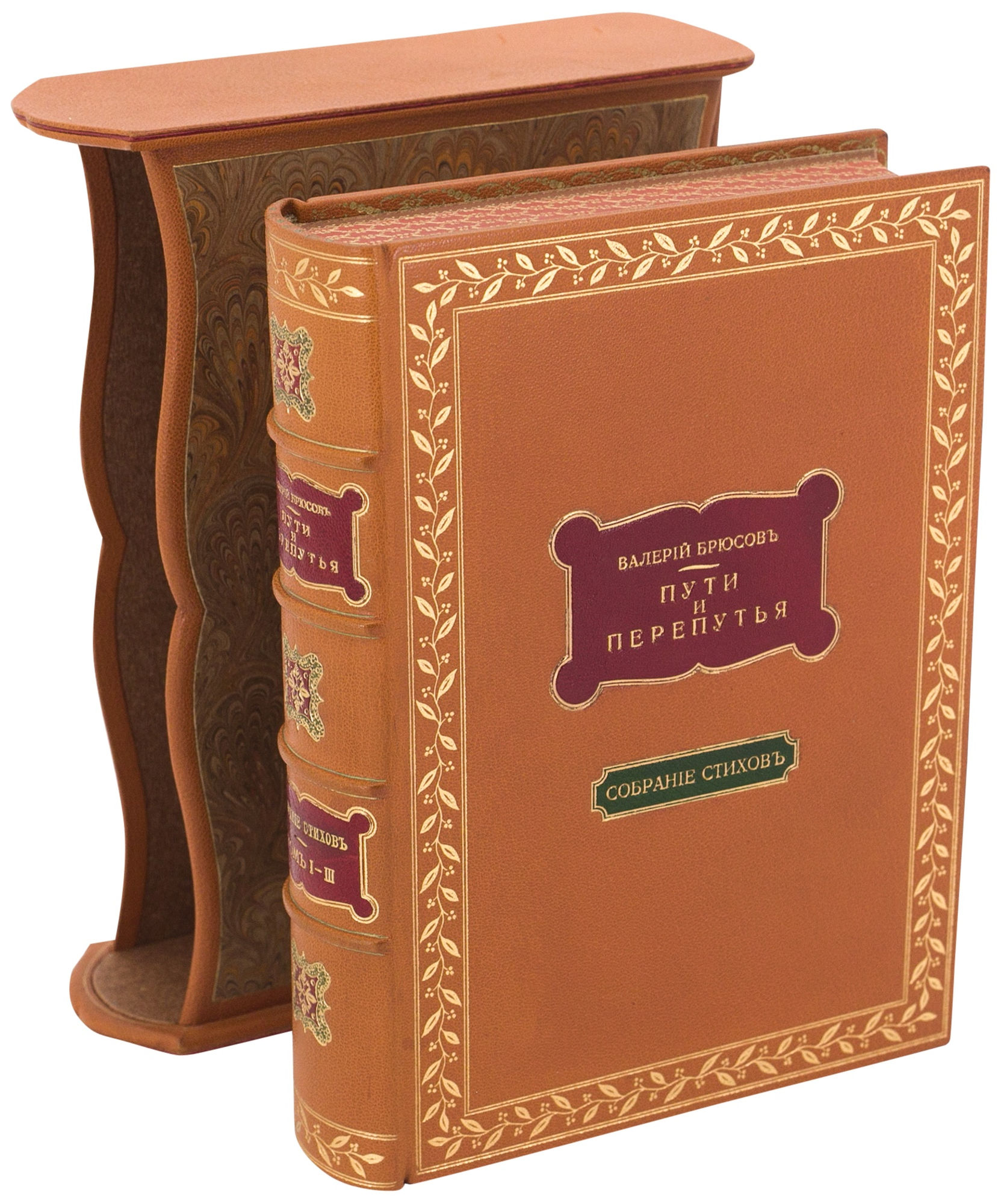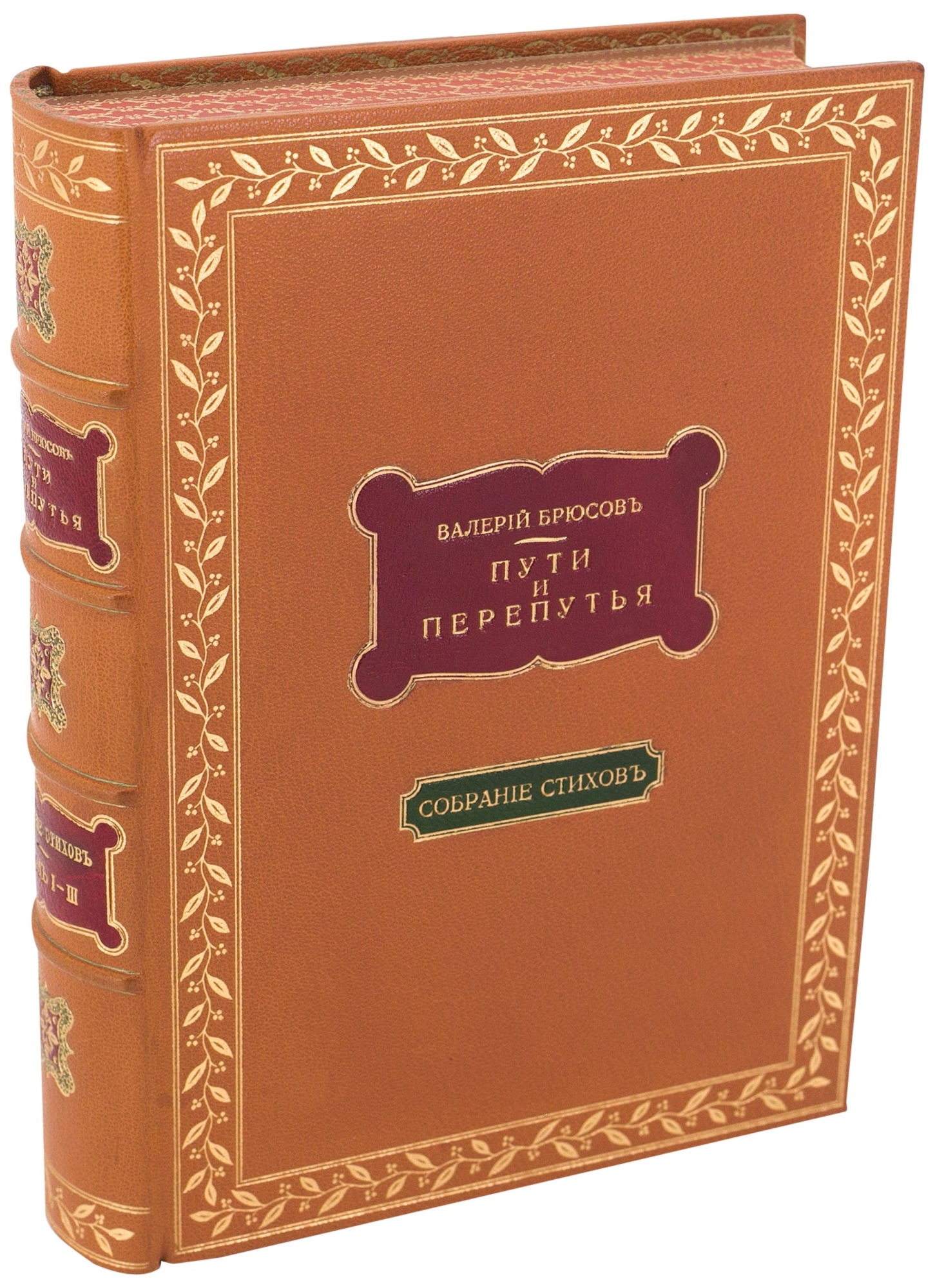 Подарочная книга "Пути и перепутья" Валерий Брюсов АННОТАЦИЯ Брюсов Валерий. Пути и перепутья. Собрание стихов. Три тома в одном переплете. Москва. Книгоиздательство «Скорпион». Издание 1908-1909 г. Увеличенный формат. На каждом из трех титульных листов подпись Барона С.С. Ольденбурга. Состояние отличное. Сергей Сергеевич Ольденбург (1888-1940, Париж) - русский историк и публицист, журналист, профессор истории. Автор фундаментального исторического исследования о жизни и деятельности Императора Николая II. ОФОРМЛЕНИЕ Полностью восстановленный и переплетенный 3-х томник; Ручной «французский» переплет на шнурах; Натуральная шагреневая кожа; Инкрустация обложки и корешка; Тиснение на корешке и обложке 22-х каратным золотом; Цельнокожаная переплетная крышка; Ручная окатка крышки орнаментом, декоративные кожаные вставки на корешке; Обрез окрашен, позолочен и торшонирован с трех сторон; Форзац оформлен мраморной бумагой ручного крашения, дублюра окатана вручную; Оригинальный фигурный полукожаный футляр. СОДЕРЖАНИЕ Т.I — Юношеские стихотворения. Это — я. Третья стража. 1892-1901 гг. (216 стр.); Т.II — Риму и миру. Венок. 1901-1905 гг. (248 стр.); Т.III — Все напевы. 1906-1909 гг. (184 стр.)