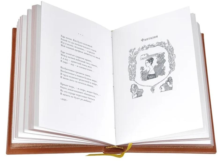 Подарочная книга "Стихотворения" Фет А.А. АННОТАЦИЯ В сборник включены лучшие стихотворения русского поэта XIX в. Афанасия Афанасьевича Фета. ОПИСАНИЕ Переплет ручной работы. Натуральная переплетная кожа. Каптал из шелковых нитей. Ляссе шелковое. Обрез окрашенный. Украшение переплета: тиснение полиграфической фольгой, блинтовое тиснение.
