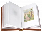 Переплет ручной работы. Натуральная переплетная кожа. Каптал из шелковых нитей. Ляссе шелковое. Обрез окрашенный. Украшение переплета: тиснение полиграфической фольгой, блинтовое тиснение.