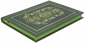 Книга исполнена по старинной французской технологии; Переплет цельнокожаный; Художественное двухцветное тиснение на обложке и корешке; вставки из кожи голубого цвета. Бумага дизайнерская, кремовая (Франция); Блок сшит на пяти шнурах; Форзац выполнен из мраморной бумаги ручного крашения; Дублюра окатана вручную серебром; Обрез блока с художественным оформлением: окрашен и гравирован вручную; Ляссе шелковое, каптал ручного плетения; Индивидуальный футляр.