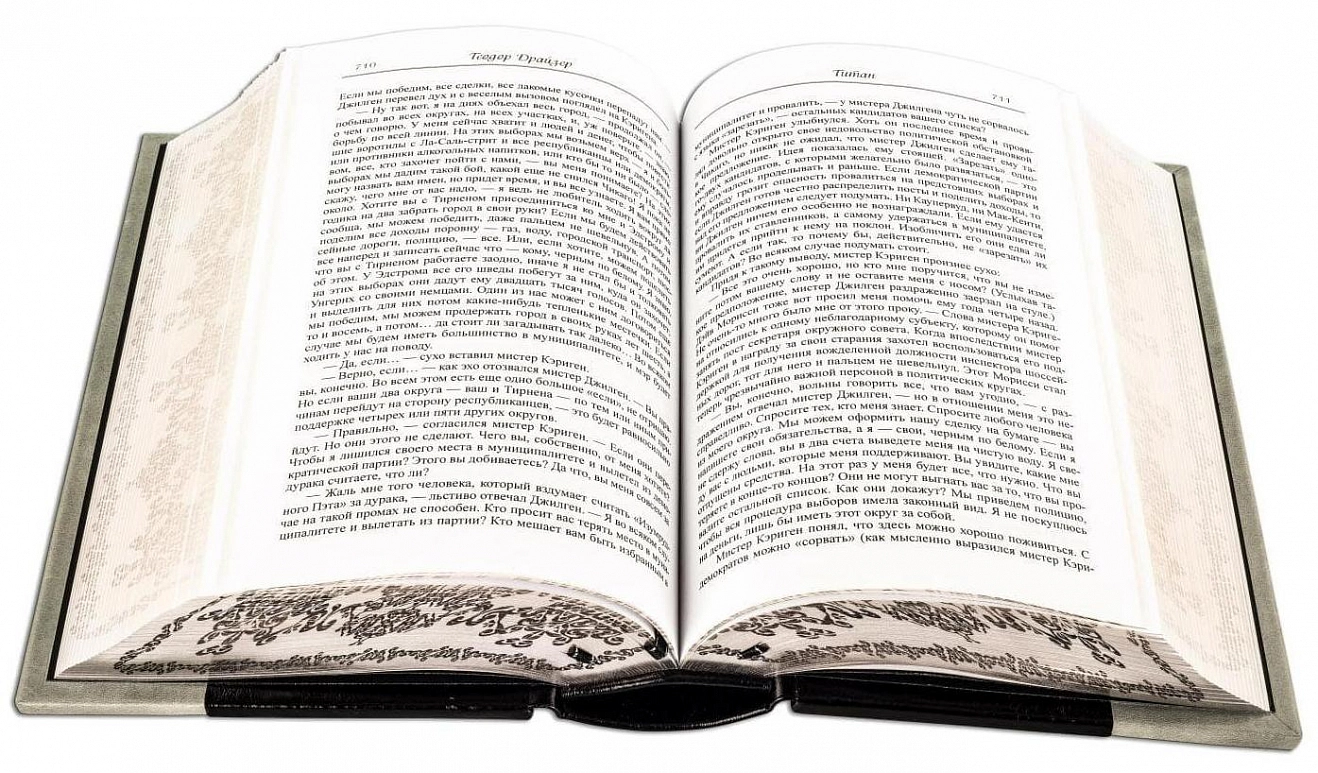 Подарочная книга Цикл романов Теодора Драйзера «Трилогия желания» АННОТАЦИЯ "Трилогия желания" - масштабное повествование американского писателя Теодора Драйзера о головокружительной карьере финансиста. В основе эпоса о Фрэнке Каупервуде - биография реального чикагского миллионера Чарлза Йеркса. Большой бизнес, финансовые аферы и махинации, жизнь и нравы олигархов блестяще описаны в трилогии. Осуществление американской мечты и обратная сторона успеха - в романах "Финансист", "Титан", "Стоик", собранных в одном томе. ОФОРМЛЕНИЕ Составной переплет «Брадель», ручной работы, выполнен из комбинации натуральных кож (кожа «Robbat nero», кожа «Jungo» производства итальянской кожевенной фабрики «Carisma»). Обложка книги двухуровневая, оформлена многоуровневым тиснением: глубоким блинтовым и рельефным золотым, с использованием фольги «Luxor 240». Обрез книги выполнен в уникальной технологии художественной запечатки золотой основы. Сертификат. Бархатный чехол. Количество страниц – 1248 стр. (офсетная бумага, черно-белая печать). Формат книги – 165х235х60 мм. Вес книги – 1,4 кг.