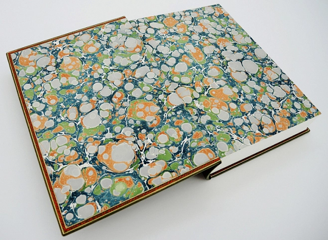 Кожа натуральная (шагрень, Франция); Бумага дизайнерская, «Olin» (Франция); Переплет цельнокожаный, выполнен по классической старинной технологии (французский переплет); Блок сшит на 4-х шнурах. Украшение переплета: Инкрустация на обложке и корешке; Тиснение цветной фольгой; Обрез блока окрашен и гравирован вручную; Форзац из бумаги ручного крашения; Ручная накатка орнамента дублюры, каптал ручного плетения; Индивидуальный футляр с кожаной окатовкой.