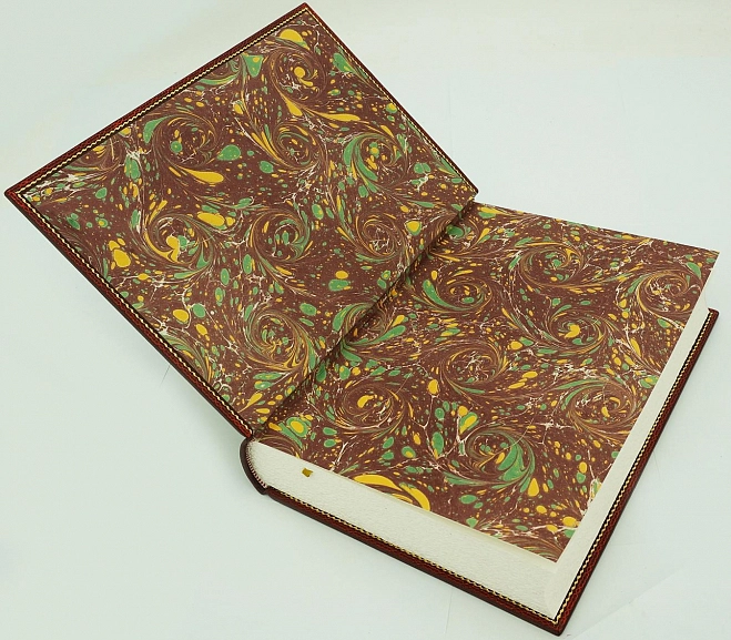 Переплет цельнокожаный, выполнен по классической старинной технологии (французский переплет);