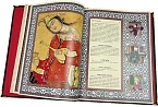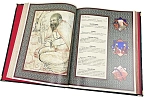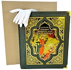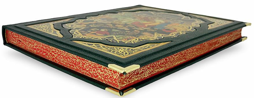Книга представлена в оригинальном подарочном коробе, сделанном из мдф и обтянутым вручную высококачественной натуральной кожей. Цельнокожаный переплёт ручной работы, украшен иллюстрированной вставкой из цветного металла. Обложка двухуровневая. Металлические уголки дополняют дизайн и сохраняют книгу при использовании. Текст книги напечатан на мелованной бумаге и дополнен цветными иллюстрациями. Обрез оформлен художественным изображением. Ляссе из шёлковой ленты. Форзац цельный из дизайнерской бумаги..