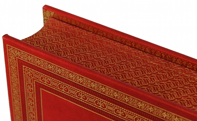 Богато оформленное собрание репринтное, представлено в подарочном издании. Французский цельнокожаный переплёт ручной работы, украшен цветной кожаной вставкой, а также золотым и блинтовым тиснением. Корешок декорирован бинтами. Текст книги напечатан на офсетной бумаге и дополнен чёрно-белыми иллюстрациями. Обрез торшонирован с нанесением орнамента. Ляссе из шёлковой ленты. Форзац цельный из дизайнерской бумаги. Дублюра окатана золотом.