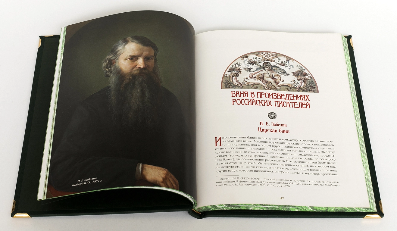 Подарочная книга "Русская баня. История и традиции" (в футляре) ОПИСАНИЕ Баня — неотъемлемый старинный элемент русского быта. Испокон веков в русской традиции баня всегда была не только местом, где можно помыться, очистить свое тело, но и особым, почти священным сооружением, где происходит очищение не только на физическом, но и на духовном уровне.