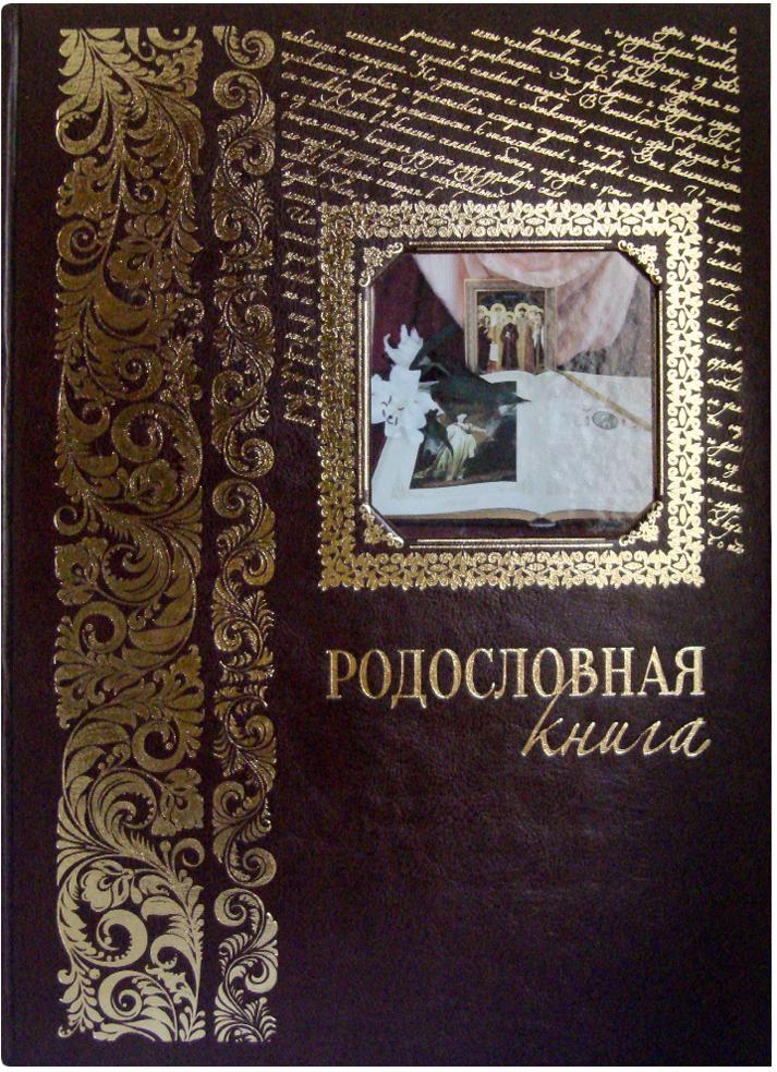 Родословная книга АННОТАЦИЯ Родословная книга – это исторический документ, важный для каждой семьи, хранящий память о предках и передающий потомкам духовные ценности своего рода. ОПИСАНИЕ Переплет ручной работы. Натуральная переплетная кожа. Каптал из шелковых нитей. Ляссе шелковое. Обрез торшонированный золотой фольгой. Украшение переплета: тиснение полиграфической фольгой, полиграфическая вставка.