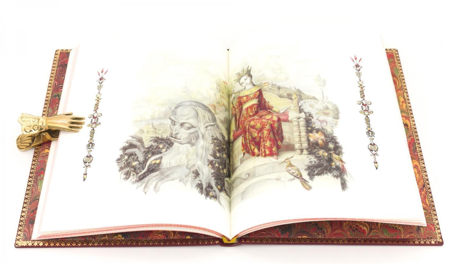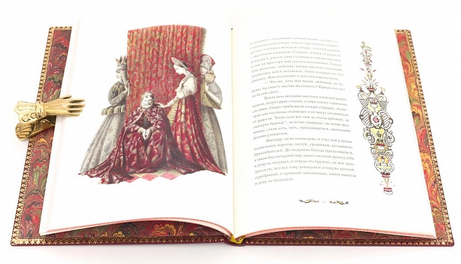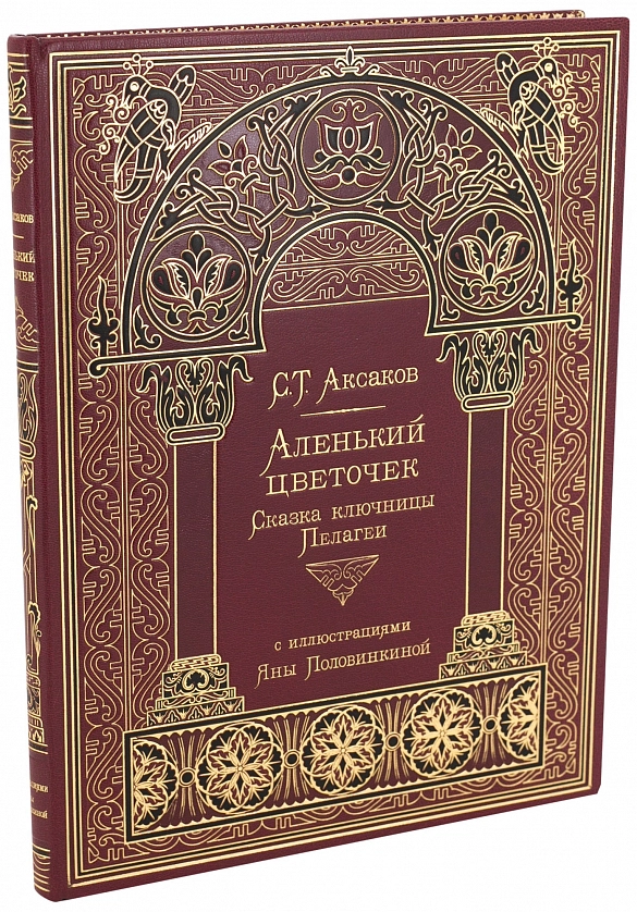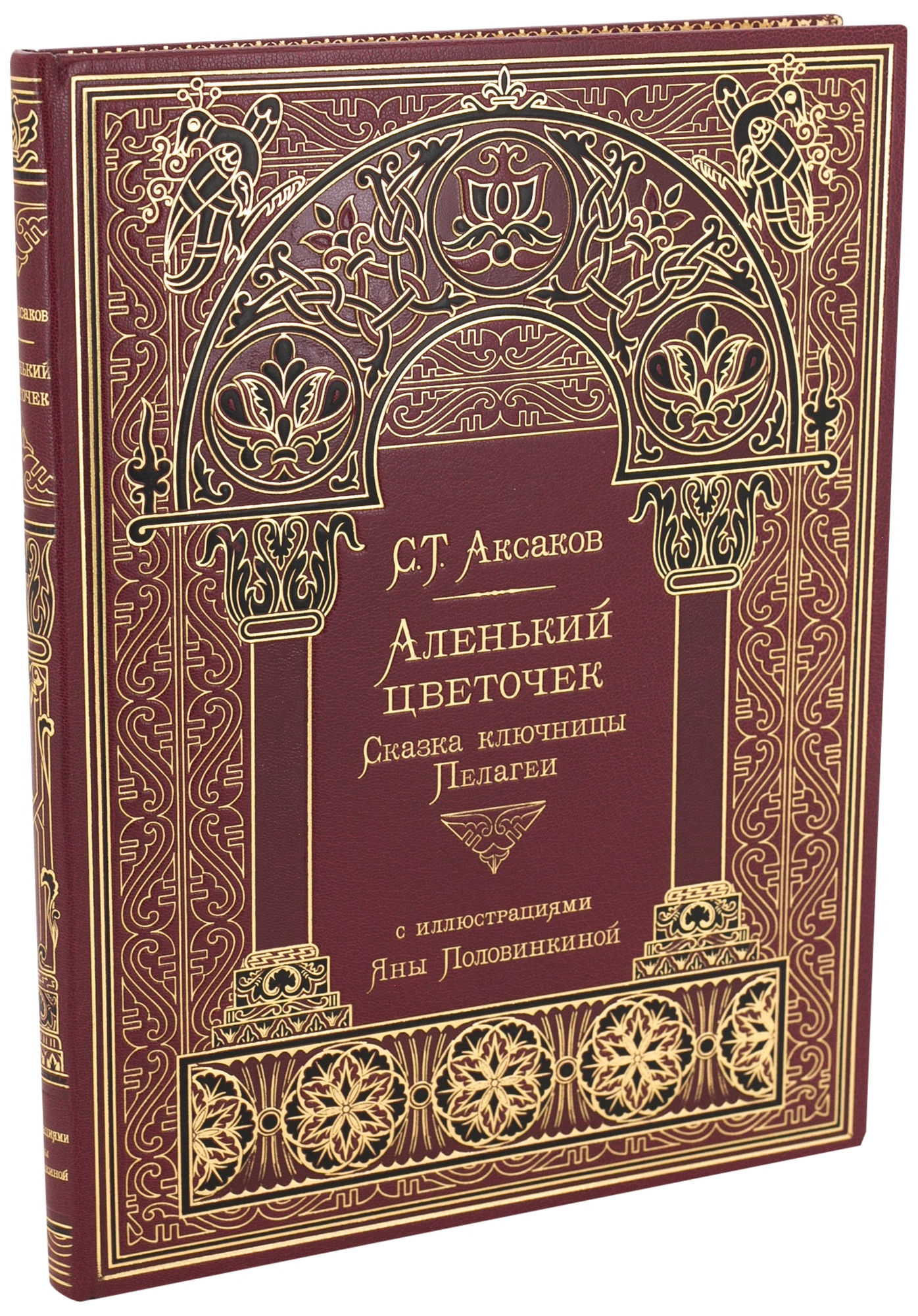 Подарочная книга "Аленький цветочек" (Сказка ключницы Пелагеи) Аксаков С.Т. АННОТАЦИЯ Коллекционная. Москва. 2020. Тираж 100 номерных экземпляров. Художник Яна Половинкина. Эксклюзивное исполнение. ОФОРМЛЕНИЕ Книга исполнена по старинной французской технологии; Переплет цельнокожаный, из натуральной шагрени (Франция); Художественное трехцветное тиснение на обложке и корешке; Бумага дизайнерская, кремовая (Франция); Блок сшит на пяти шнурах; Форзац выполнен из мраморной бумаги ручного крашения; Дублюра окатана вручную 23-каратным золотом; Обрез блока с художественным оформлением: окрашен и гравирован вручную; Ляссе шелковое, каптал ручного плетения; Индивидуальный футляр.