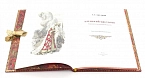 Книга исполнена по старинной французской технологии; Переплет цельнокожаный, из натуральной шагрени (Франция); Художественное трехцветное тиснение на обложке и корешке; Бумага дизайнерская, кремовая (Франция); Блок сшит на пяти шнурах; Форзац выполнен из мраморной бумаги ручного крашения; Дублюра окатана вручную 23-каратным золотом; Обрез блока с художественным оформлением: окрашен и гравирован вручную; Ляссе шелковое, каптал ручного плетения; Индивидуальный футляр.
