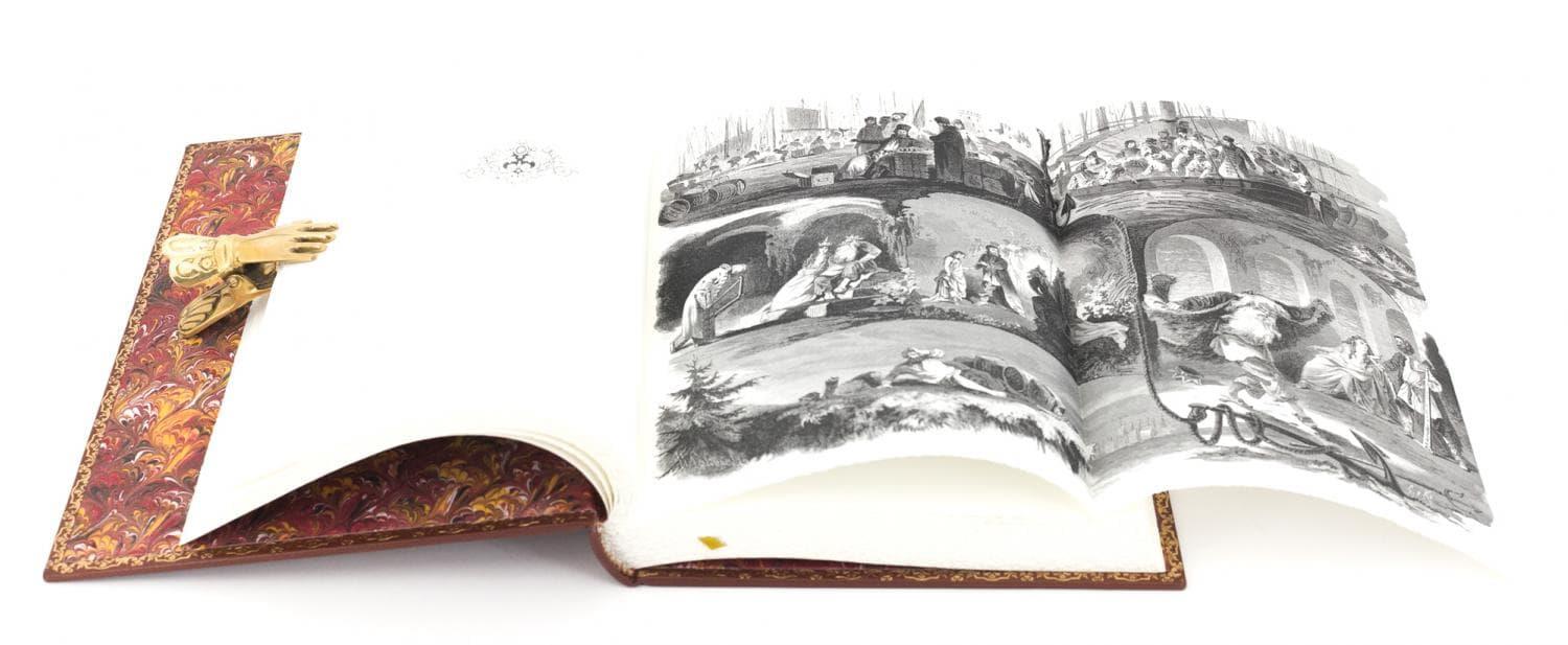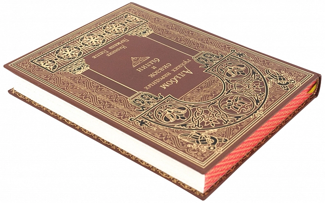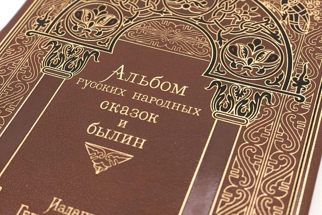 АЛЬБОМ РУССКИХ НАРОДНЫХ СКАЗОК И БЫЛИН АННОТАЦИЯ Редкость! Коллекционное издание. Эксклюзивное исполнение. Тираж 100 номерных экземпляров. Москва. 2019. Альбом, включающий в себя народные былины и сказки, а также поэтические переложения произведений А. С. Пушкина и П. П. Ершова, был издан 1875 году Германом Гоппе. Это роскошное издание он посвятил императрице Марии Александровне. И сам издатель, и супруга императора Александра II были выходцами из Германии, навсегда связавшими свою судьбу с Россией. Во второй половине XIX века, после отмены крепостного права, в период промышленного и культурного расцвета страны, в Россию прибыло немало выходцев из Европы, и большинство из них обрели здесь новую родину. Помня об этом факте, легче понять решаемую издателем Германом Гоппе задачу. Он преследовал «научную цель исследования народных сказаний», актуальную как для иностранцев, так и для русских людей. Каждое из произведений, включенных в альбом, было снабжено комментариями, необходимость которых объясняется издателем в предисловии. Книгу иллюстрировали замечательные художники — И. И. Соколов, Н. И. Соколов, В. М. Васнецов и другие. Как и многие издания Гоппе, например такие, как журналы «Модный свет» и «Всемирная иллюстрация», «Альбом русских сказок и былин» оставил неизгладимый след в нашей культуре. Известно, что замечательный советский актер С. Д. Столяров, создавая образы сказочных витязей и былинных богатырей — образы, ставшие настоящими символами «русского духа», — черпал вдохновение именно в этой книге, украшавшей его домашнюю библиотеку. Мы впервые переиздаем «Альбом русских сказок и былин» в современной орфографии. ОФОРМЛЕНИЕ Книга исполнена по старинной французской технологии; Переплет цельнокожаный, из натуральной шагрени (Франция); Бумага дизайнерская из коллекции «Olin», (Франция) Блок сшит на пяти шнурах; Переплетная крышка декорирована художественным многоцветным тиснением в стиле русского модерна; Форзац выполнен из мраморной бумаги ручного крашения; Дублюра окатана вручную 23-каратным золотом; Обрез блока с художественным оформлением: окрашен и гравирован вручную; Ляссе шелковое, каптал ручного плетения; Индивидуальный футляр с кожаной окантовкой.