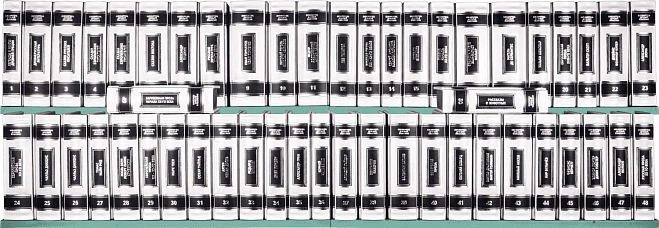 Составной переплет «Брадель» ручной работы, выполнен из комбинации натуральных кож «Robbat Parle» и «Robbat Nero» производства итальянской кожевенной фабрики Carisma». Обложки книг оформлены комбинацией многоуровневого объемного тиснения: глубокого блинтового, рельефного золотого и серебряного, c использованием фольги «Luxor 240». Обрезы книг выполнены в уникальной технике позолоты с нанесением орнамента. По желанию клиента на заднюю обложку каждого тома может быть оттеснена семейная монограмма (суперэкслибрис), что переводит собрание в разряд фамильной библиотеки, которая будет передаваться из поколения в поколение.