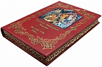 Подарочная книга в кожаном переплете, исторический французский стиль и красная шагреневая кожа с золотым тиснением делает её схожей с древними книгами, которые делались мастерами в 16-17 веках. Это полностью ручная работа, художественная роспись, книжный блок страниц с золотым узором в русском стиле. Текст книги сделан на двух языках: русском и английском, так что вполне можно изучать иностранный язык по знакомым с детства сказкам.
