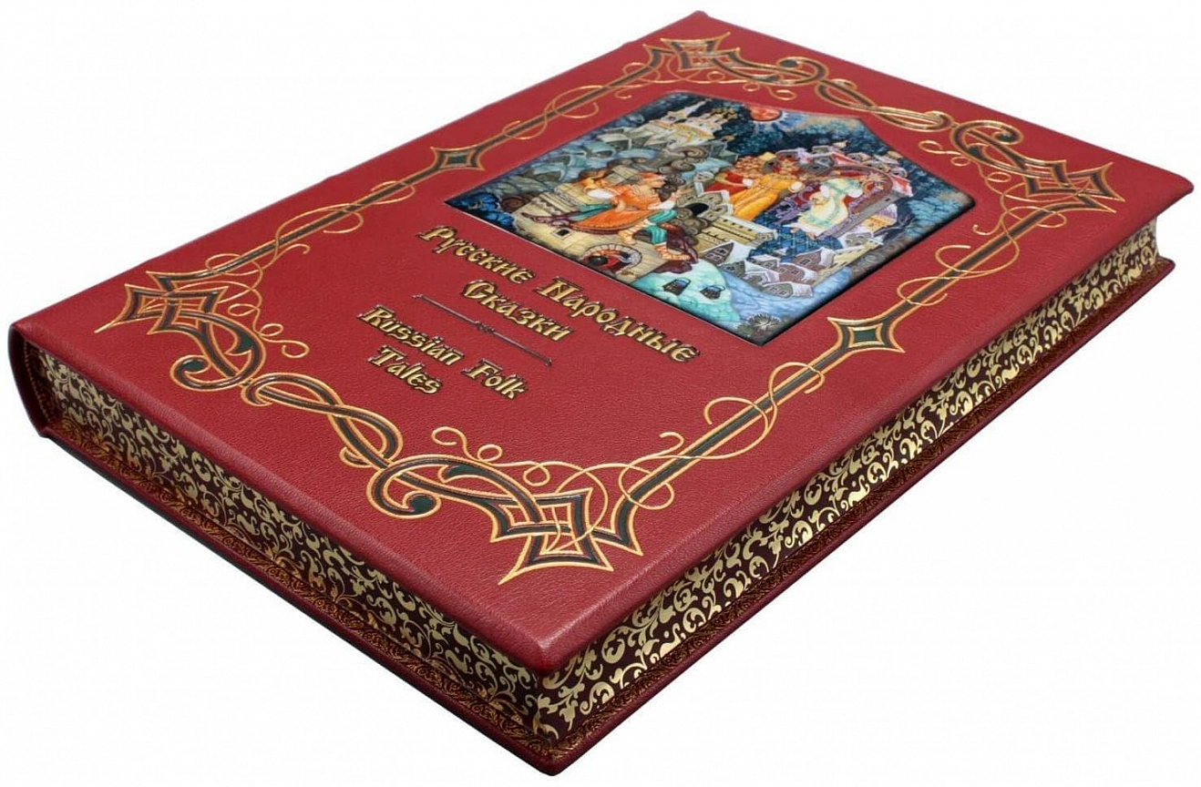 ПОДАРОЧНАЯ КНИГА РУССКИЕ НАРОДНЫЕ СКАЗКИ АННОТАЦИЯ Народные сказки - удивительное и уникальное явление как в русской литературе, так и во всей русской культуре. Это русская смекалка и мудрость, это наша история и самобытность. Данная книга имеет русский и английский текст, куда вошли сказки из сборника А. Н. Афанасьева, знаменитого исследователя духовной культуры славянских народов, историка и литературоведа. ОФОРМЛЕНИЕ Подарочная книга в кожаном переплете, исторический французский стиль и красная шагреневая кожа с золотым тиснением делает её схожей с древними книгами, которые делались мастерами в 16-17 веках. Это полностью ручная работа, художественная роспись, книжный блок страниц с золотым узором в русском стиле. Текст книги сделан на двух языках: русском и английском, так что вполне можно изучать иностранный язык по знакомым с детства сказкам.