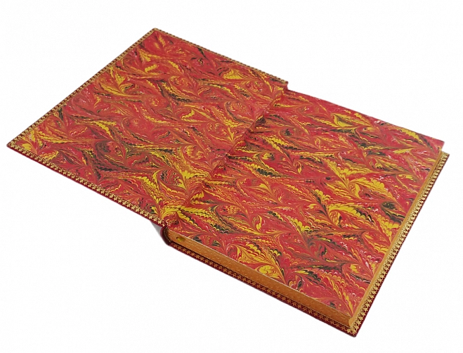 • Форзац выполнен из мраморной бумаги ручного крашения;