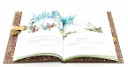 Книга исполнена по старинной французской технологии; Переплет цельнокожаный, из натуральной шагрени (Франция); Бумага дизайнерская из коллекции «Olin», (Франция) Блок сшит на пяти шнурах; Переплетная крышка декорирована художественным многоцветным тиснением в стиле русского модерна; Форзац выполнен из мраморной бумаги ручного крашения; Дублюра окатана вручную 23-каратным золотом; Обрез блока с художественным оформлением: окрашен и гравирован вручную; Ляссе шелковое, каптал ручного плетения; Индивидуальный футляр с кожаной окантовкой.