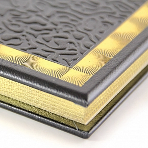 Бинты на корешках, тиснение золотой и пигментной фольгой, шелковые каптал и ляссе