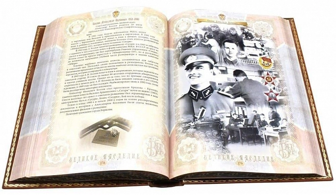 "ИСТОРИЯ ФСБ" ПОДАРОЧНОЕ ИЗДАНИЕ АННОТАЦИЯ Книга Госбезопасность – это истории известных и скрытых от прожекторов славы людей, посвятивших свою жизнь самоотверженной охране интересов нашей страны как внутри, так и за ее рубежами. ОФОРМЛЕНИЕ Подарочное издание от нашей переплетной мастерской – полностью ручная работа. Кожаный переплет, тиснение фольгой нескольких цветов и декорирование блока. Элегантный дизайн эффектно подчеркивает информационное наполнение.