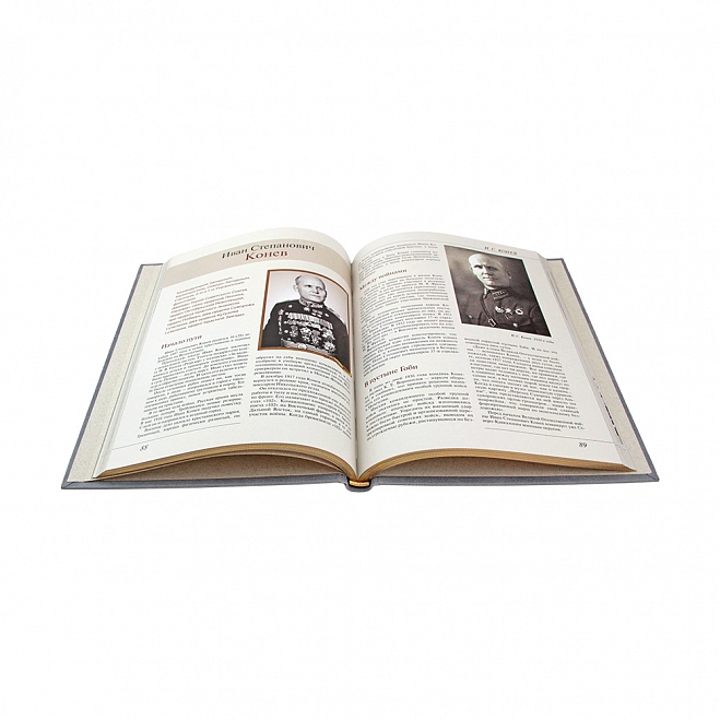 Подарочная книга "Полководцы победы" В.В.Артемов Аннотация Книга «Полководцы Победы» рассказывает о полководцах, командовавших Вооруженными Силами Советского Союза в период Великой Отечественной войны. Статьи включают биографии военачальников, описание их военных подвигов и наград, характеристику военных операций, которыми они руководили, оценку их роли в достижении Победы. Читатель узнает о жизненном пути и вкладе в Победу Г. К. Жукова, К. К. Рокоссовского, А. М. Василевского, К. Е. Ворошилова, С. М. Буденного, И. С. Конева и многих других. ОПИСАНИЕ Переплёт ручной работы из натуральной кожи. Форзац из дизайнерской бумаги. 4 бинта на корешке, ручной обработки. Каптал золотой из натуральной кожи. Обрез блока торшонированный золотой. Тиснение блинтовое, золотой и цветной фольгой. Ляссе.