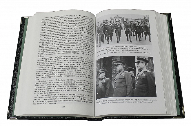 Жуков Г.К. Воспоминания и размышления (в 2-х томах) АННОТАЦИЯ Широко известная книга четырежды Героя Советского Союза Маршала Георгия Константиновича Жукова впервые вышла в 1969 году и с тех пор выдержала тринадцать изданий. Все эти годы книга пользуется неизменно огромной популярностью у читателей разных поколений. Новое издание приурочено к 65-летию Победы в Великой Отечественной войне. 13-е издание, исправленное и дополненное по рукописям автора. ОПИСАНИЕ Богато оформленное собрание, представлено в подарочном издании. Цельнокожаный переплёт ручной работы, украшен иллюстрированной вставкой из цветного металла. Обложка двухуровневая. Текст книг напечатан на офсетной бумаге, дополнен чёрно-белыми иллюстрациями. Обрез оформлен в технике "Перо павлина". Ляссе из шёлковой ленты. Форзац цельный из дизайнерской бумаги. Футляр кожаный, вдохновлён дизайном книги. Собрание представлено в оригинальном подарочном коробе, перчатки и, по желанию, сертификат (может быть именным) в комплекте. Цветовое сочетание переплёта и упаковки может отличаться от представленных на фото.