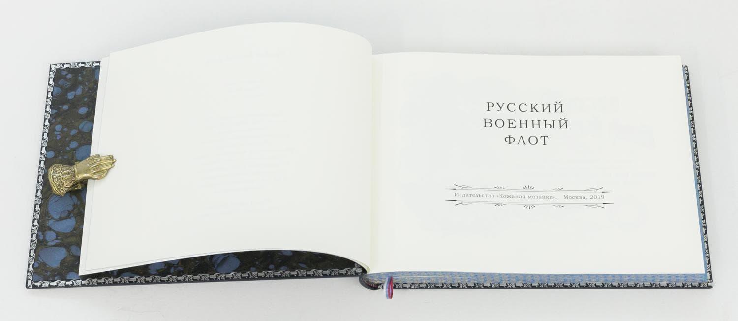 РУССКИЙ ВОЕННЫЙ ФЛОТ. ИЛЛЮСТРИРОВАННАЯ ИСТОРИЯ СО ВРЕМЕН ПЕТРА ВЕЛИКОГО ДО НАСТОЯЩЕГО ВРЕМЕНИ. 1689 – 1905. АННОТАЦИЯ Москва. 2019. Коллекционная. Тираж 100 номерных экземпляров. Переиздание 1904 года. Иллюстрированное издание, посвященное русскому военному флоту. В альбоме представлены модели кораблей, яхт, пароходов, крейсеров, броненосцев, учебных судов 1688 - 1905 гг ; планы морских сражений и портреты деятелей морского флота. Предваряет издание снимок с собственноручной записки Государя Петра Великого о находке ботика и первых плаваниях Его Величества. Эксклюзивное исполнение. ОФОРМЛЕНИЕ Переплёт цельнокожаный, выполнен по старинной европейской технологи. Блок сшит на пяти шнурах. Кожа натуральная, искусственно застаренная вручную. Украшение переплёта: художественное тиснение цветной фольгой. Инкрустация шагреневой кожей. Форзац составной, из мраморной бумаги ручного крашения. Ручная окатка бордюрным орнаментов. Ляссе шелковое, каптал ручного плетения. Обрез блока с художственным оформлением: позолочен и окрашен, с последующей ручной гравировкой. Книга помещена в индивидуальный футляр с кожаной окантовкой и ручной золотистой накаткой.
