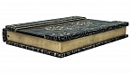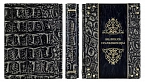 Составной переплет «Брадель», ручной работы, выполнен из комбинации натуральных кож (кожа «Plonge Brown», кожа «Argento dinosauro» производства итальянской кожевенной фабрики «Claudio»). Обложка книги двухуровневая, оформлена рельефным золотым тиснением (фольга «Luxor 240»), вставками из плетеного кожаного шпагата (цвет «Bronze»), латунными холитенами, количеством 12 шт. Обрез книги оформлен в уникальной технике «Old Gold».