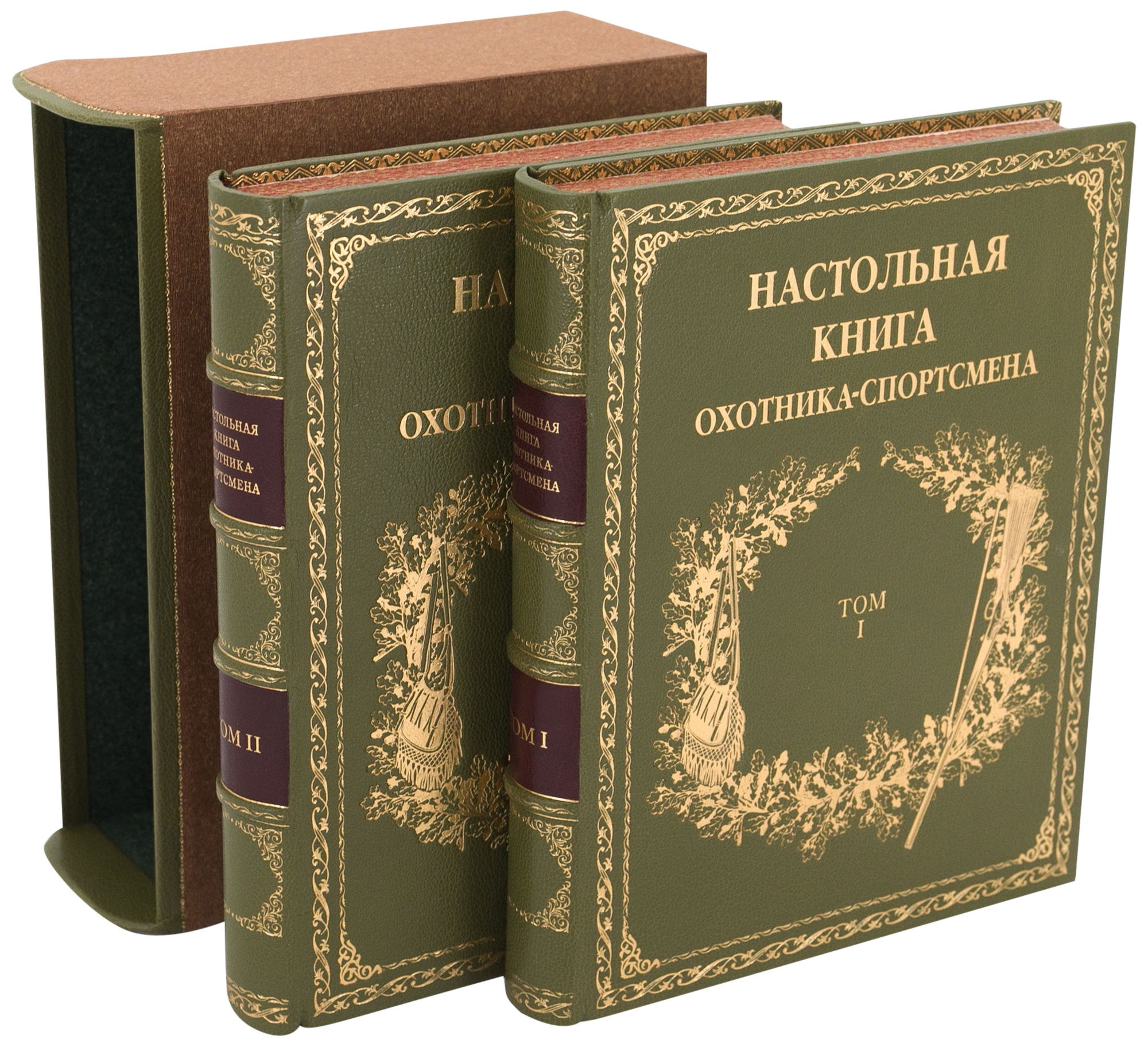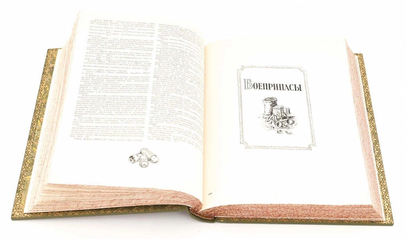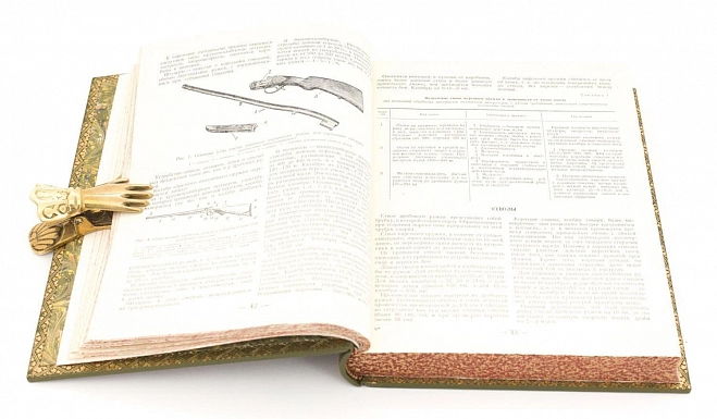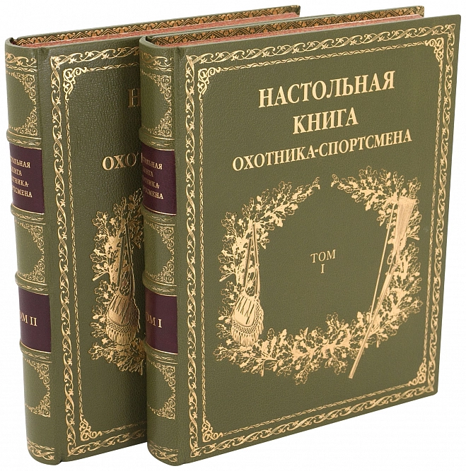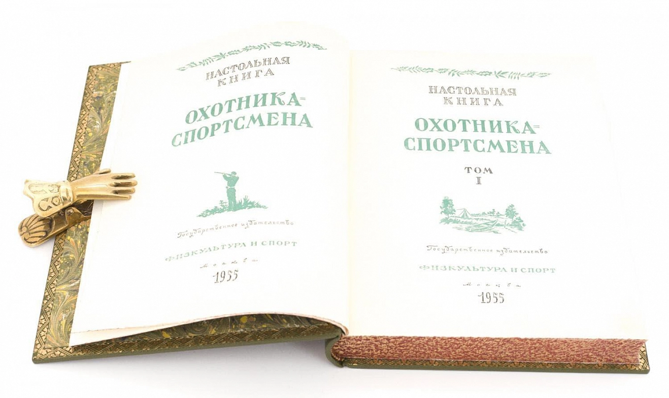 НАСТОЛЬНАЯ КНИГА ОХОТНИКА-СПОРТСМЕНА (В 2-Х ТОМАХ, 1955) АННОТАЦИЯ Москва. Государственное издательство Физкультура и Спорт. 1955. Редколлегия: проф. П. А. Мантейфель, В. В. Архангельский, В. Е. Герман. Москва. Государственное издательство Физкультура и Спорт. 1955-1956 гг. Книга задумана как своеобразная энциклопедия, в которой ответы на многие актуальные вопросы найдут не только начинающие охотники, но и спортсмены с большим охотничьим стажем. Первый том посвящен оружию, боеприпасам, технике безопасности на охоте, снаряжению охотника-спортсмена в те или иные сезоны, а также охотничьей лагерной жизни. Значительное место в первом томе отведено обзорной статье об охотничьей теме в старой русской и современной художественной литературе. В работе над первым томом принимал участие большой коллектив авторов: Н. К. Депарма, А. И. Толстопят, А. Я. Зеленков, И. К. Андреев, Б. А. Крейцер и др. Во втором томе читатели познакомятся с краткими биологическими сведениями об охотничьих зверях и птицах, обитающих в нашей стране, узнают все основные способы охоты на них, получат полное представление о всех породах охотничьих собак и способах их применения на различных охотах по зверю. Здесь же охотник найдет для себя необходимые сведения о подготовке к различным охотам. Завершает второй том словарь охотничьих терминов. В работе над II томом принимал участие большой коллектив авторов: Ф. С. Акишин, В. В. Архангельский, В. Е. Герман, Г. И. Иванов и др. Издание содержит многочисленные черно-белые и цветные иллюстрации. Илл. Энциклопедический формат. Состояние отличное. ОФОРМЛЕНИЕ Художественный, французский переплет изготовлен из натуральной шагреневой кожи, украшен тиснением в три цвета, дублюры окатаны золотом, обрезы окрашены и гравированы вручную, футляр из дизайнерской бумаги, украшен кожаным кантом