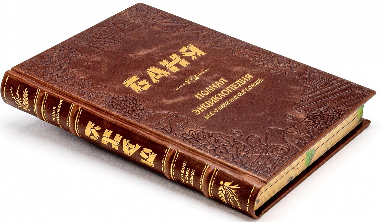 Книга о бане, все и даже больше в кожаном переплете с индивидуальным тематическим тиснением. Отпечатана на дизайнерской бумаге, обрезы книжного блока украшены рисунками. Книга получилась очень интересной по содержанию и стильно оформленной, великолепный подарок ценителям таких мероприятий.