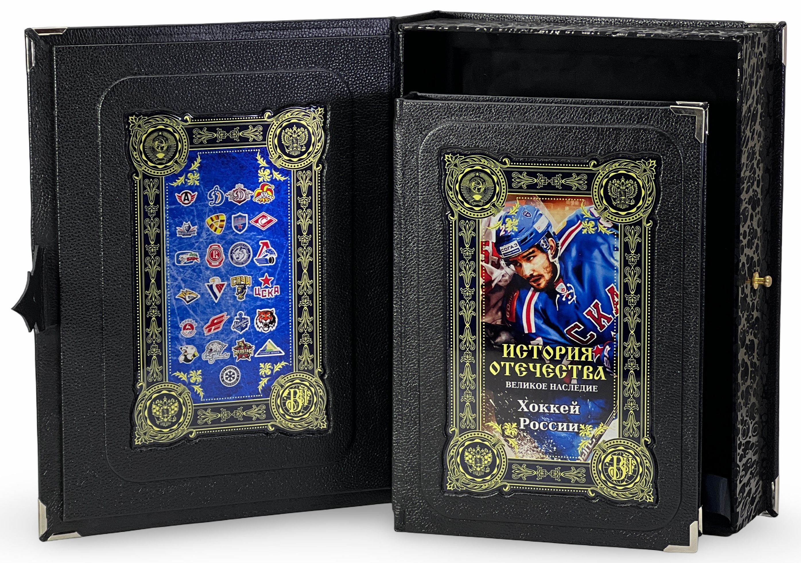 Подарочная книга "Хоккей. Великое наследие" (в коробе) АННОТАЦИЯ «Хоккей» – один из томов серии книг «Великое наследие». В книге собраны биографии знаменитых тренеров, внёсших неоценимый вклад в развитие хоккея в нашей стране и принесших многочисленные победы нашей сборной. Здесь же вы найдёте информацию о знаменитых советских и российских хоккеистах, не раз становившимися победителями и призёрами Олимпийских игр и чемпионатов мира. В разделе «Золотые страницы истории» собраны наиболее значительные победы наших сборных за всю историю хоккея в нашей стране. Для привлечения большего внимания к этому виду спорта мы решили издать том «Хоккей», в который вошла краткая история отечественного хоккея с описанием наиболее значимых матчей советской и российской сборных. Дана информация о клубах КХЛ, ЖХЛ, о Ночной хоккейной лиге. ОПИСАНИЕ Книга представлена в оригинальном подарочном коробе, сделанном из мдф и обтянутым вручную высококачественной натуральной кожей. Цельнокожаный переплёт ручной работы, украшен иллюстрированной вставкой из цветного металла. Обложка двухуровневая. Металлические уголки дополняют дизайн и сохраняют книгу при использовании. Текст книги напечатан на мелованной бумаге и дополнен цветными иллюстрациями. Обрез оформлен художественным изображением. Ляссе из шёлковой ленты. Форзац цельный из дизайнерской бумаги.