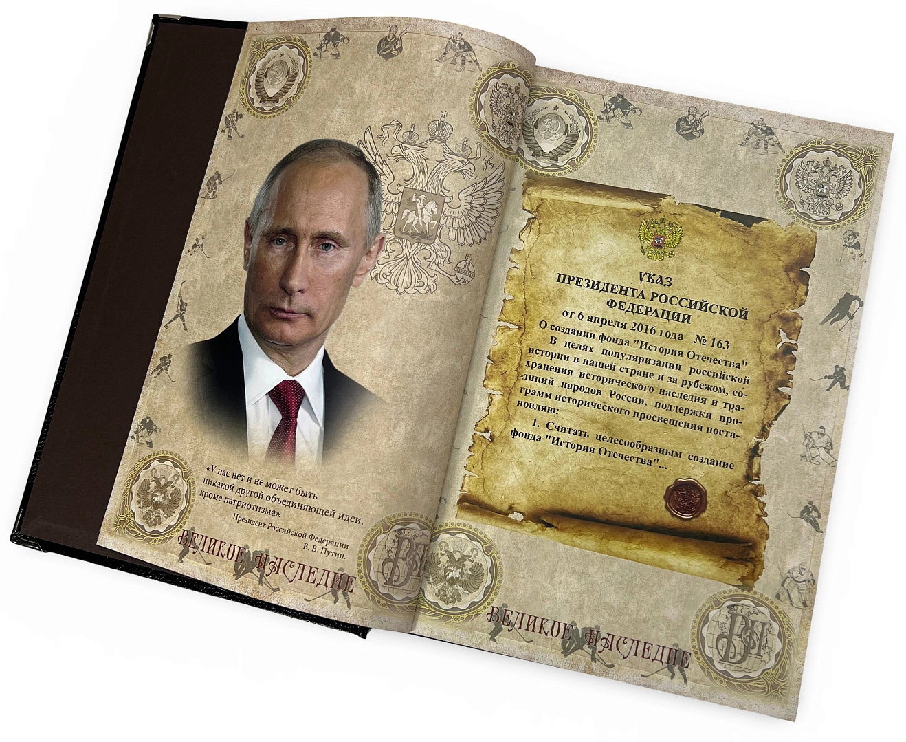 Подарочная книга "Хоккей. Великое наследие" (в коробе) АННОТАЦИЯ «Хоккей» – один из томов серии книг «Великое наследие». В книге собраны биографии знаменитых тренеров, внёсших неоценимый вклад в развитие хоккея в нашей стране и принесших многочисленные победы нашей сборной. Здесь же вы найдёте информацию о знаменитых советских и российских хоккеистах, не раз становившимися победителями и призёрами Олимпийских игр и чемпионатов мира. В разделе «Золотые страницы истории» собраны наиболее значительные победы наших сборных за всю историю хоккея в нашей стране. Для привлечения большего внимания к этому виду спорта мы решили издать том «Хоккей», в который вошла краткая история отечественного хоккея с описанием наиболее значимых матчей советской и российской сборных. Дана информация о клубах КХЛ, ЖХЛ, о Ночной хоккейной лиге. ОПИСАНИЕ Книга представлена в оригинальном подарочном коробе, сделанном из мдф и обтянутым вручную высококачественной натуральной кожей. Цельнокожаный переплёт ручной работы, украшен иллюстрированной вставкой из цветного металла. Обложка двухуровневая. Металлические уголки дополняют дизайн и сохраняют книгу при использовании. Текст книги напечатан на мелованной бумаге и дополнен цветными иллюстрациями. Обрез оформлен художественным изображением. Ляссе из шёлковой ленты. Форзац цельный из дизайнерской бумаги.
