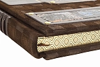 Разместить на обложке, форзаце при индивидуальном изготовлении                                                                            монограмму, экслибрис, родовой герб