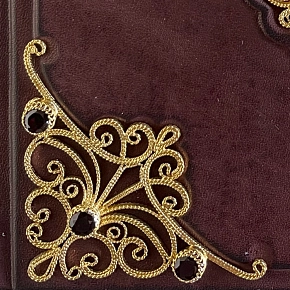 Подарочная книга "Библия" с комментариями, филигранью (золото) и гранатами.
