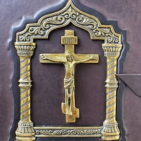 Подарочная книга "Библия" Большая на церковно-славянском языке с литьем и филигранью (золото) и гранатами в замшевой шкатулке.