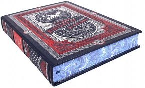 Составной переплет «Брадель» ручной работы, выполнен из натуральной кожи «Rabbat nero» производства итальянской кожевенной фабрики «Carisma». Обложка книги оформлена вставками из холста с художественной фотопечатью и рельефным серебряным тиснением (с использованием фольги «Luxor 240»). Обрез книги выполнен в авторской технике серебрения с нанесением репродукций.