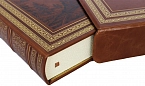 Богато оформленное репринтное собрание, представлено в подарочном издании. Французский цельнокожаный переплёт ручной работы, украшен цветной кожаной вставкой, а также блинтовым и золотым тиснением. Корешок декорирован бинтами. Текст книги напечатан на бумаге Palatina Avorio 100 Австрийского производства . Обрез оформлен в технике торшонирование. Ляссе из шёлковой ленты. Форзац цельный из дизайнерской бумаги. Дублюра окатана золотом. Футляр кожаный, вдохновлён дизайном книги.