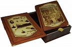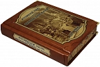Репринтное издание представлено в оригинальном подарочном коробе, сделанном из металла, и обтянутым вручную высококачественной кожей. Металлические художественные вставки с изображением, соответствующим тематике издания. Отпечатано на дизайнерской бумаге "верже". Крашеный в тон переплетного материала обрез.