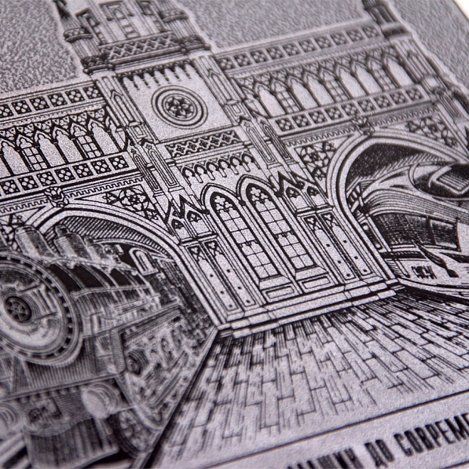 Тиснение блинтовое, серебряной и цветной фольгой.