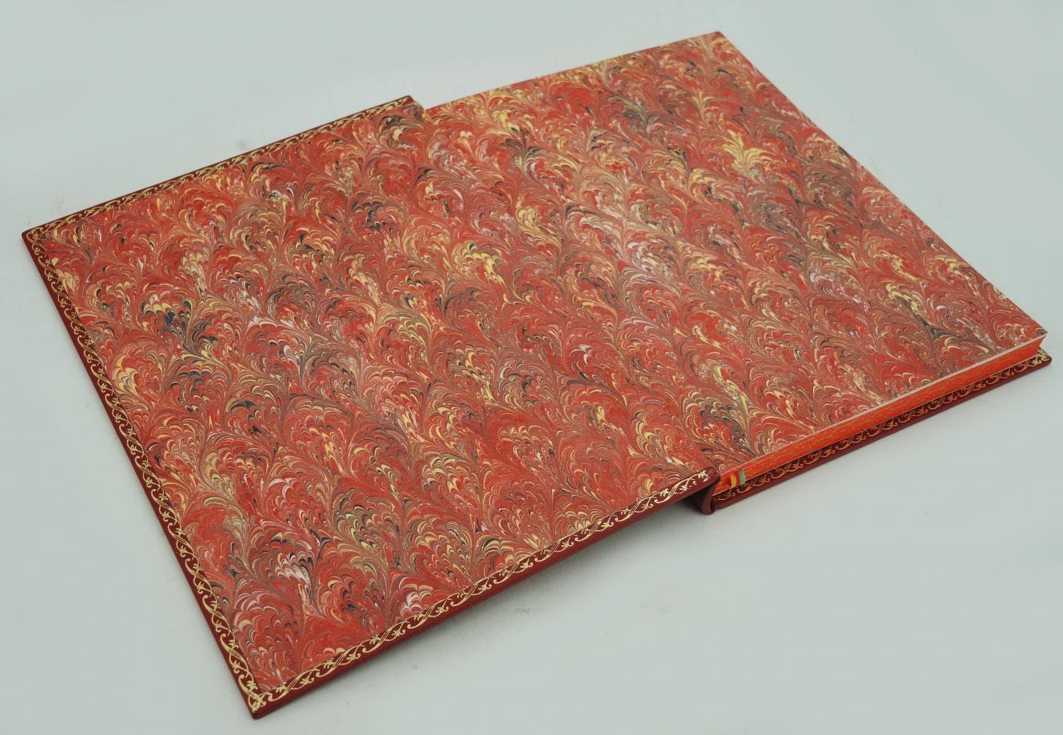 Форзац выполнен из мраморной бумаги ручного крашения;