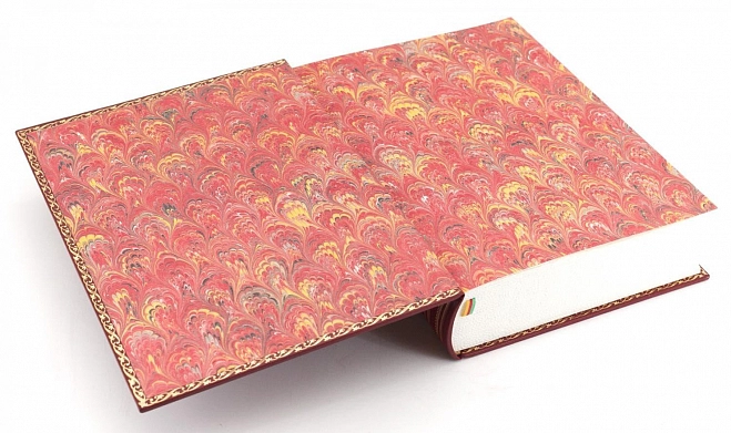 Форзац выполнен из мраморной бумаги ручного крашения;