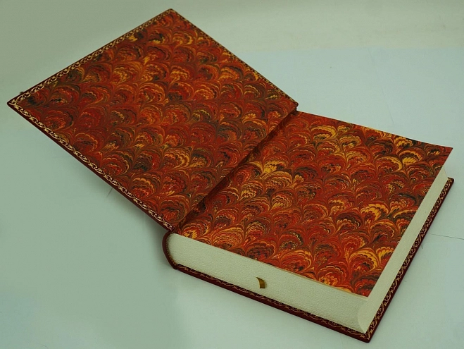 Форзац выполнен из мраморной бумаги ручного крашения;