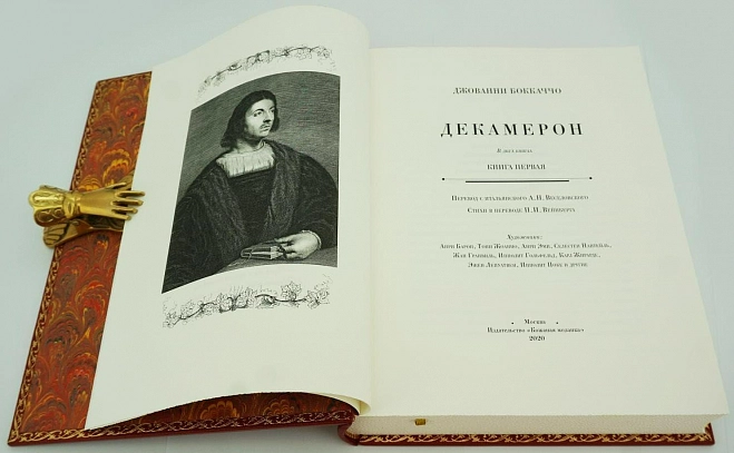 Одна из самых знаменитых книг раннего итальянского Ренессанса, написанная приблизительно в 1352—1354 годы. Эксклюзивный переплёт выполнен в мастерской издательства «Кожаная мозаика».