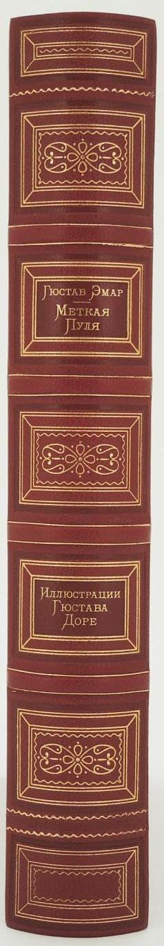 ЭМАР ГЮСТАВ. «МЕТКАЯ ПУЛЯ» АННОТАЦИЯ Москва. 2018. Историко-приключенческий роман одного из популярнейших французских писателей XIXвека, проиллюстрированный знаменитым Гюставом Доре. ОФОРМЛЕНИЕ - Книга (формат 23,5 х 30 см) исполнена по старинной французской технологии; - Переплет цельнокожаный, из натуральной шагрени (Франция); - Бумага дизайнерская, кремовая, из коллекции «Olin» - Блок сшит на пяти шнурах; - Дублюраокатана вручную 23-каратным золотом; - Форзац выполнен из мраморной бумаги ручного крашения; - Ручная окраска и гравировка образа; торшонирование - Ляссе шелковое, каптал ручного плетения; - Индивидуальный футляр.