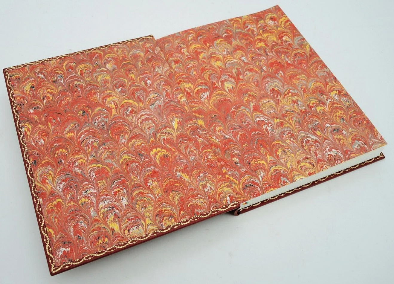 Форзац выполнен из мраморной бумаги ручного крашения;