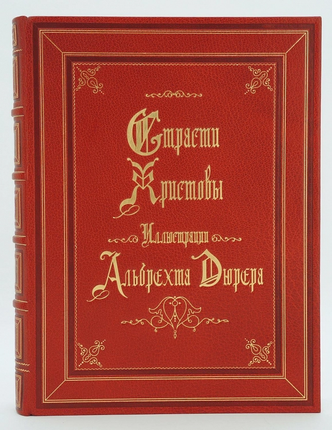 СТРАСТИ ХРИСТОВЫ: БЕСЕДЫ О СТРАДАНИЯХ ГОСПОДА НАШЕГО ИИСУСА ХРИСТА (ИЛЛЮСТРАЦИИ АЛЬБРЕХТА ДЮРЕРА) АННОТАЦИЯ Москва. 2017. Коллекционная. Тираж 100 пронумерованных экземпляров. Книга «Страсти Христовы» появилась в 1902 году в Санкт – Петербурге и являлась приложением к журналу «Отдых Христианина», важнейшими аспектами работы которого было духовное просвещение, распространение религиозного знания и, в частности, доступное изложение евангельских сюжетов. Настоящее издание украшают два цикла гравюр знаменитого немецкого мастера Альбрехта Дюрера: «Большие страсти» и « Малые страсти», получившие свое название исключительно из-за размера изображений. Дюрер создавал свои циклы гравюр не для иллюстрирования книг, а как самодостаточное произведение. И хронологический разрыв между первым изданием книги и ее иллюстративным рядом значителен: почти 400 лет. Однако общая тема – страдания Христа – их объединяет. И великолепные гравюры мастера усиливают эффект от проникновенных глав книги. ОФОРМЛЕНИЕ Книга (формат 23,5 х 30 см) исполнена по старинной французской технологии; Переплет цельнокожаный, из натуральной шагрени (Франция); Бумага верже, кремовая; Блок сшит на пяти шнурах; Ручная окатка дублюры. Форзац выполнен из мраморной бумаги ручного крашения; Дублюра окатана вручную 23-каратным золотом; Обрез блока с художественным оформлением; Ляссе шелковое, каптал ручного плетения; Индивидуальный футляр.