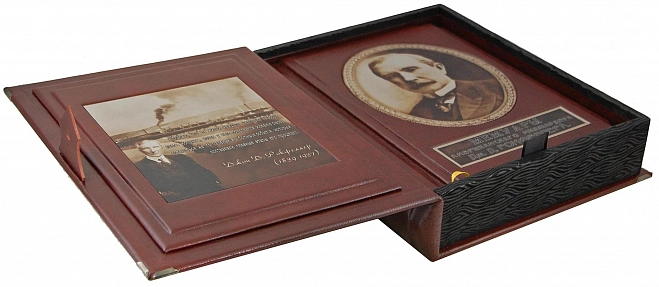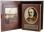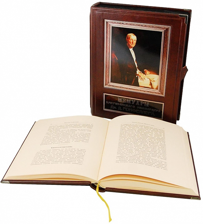 Рокфеллер Дж.Д. Мемуары АННОТАЦИЯ Джон Дэвисон Рокфеллер (англ. John Davison Rockefeller; 8 июля 1839, Ричфорд, штат Нью-Йорк — 23 мая 1937, Ормонд Бич, Флорида) — американский предприниматель, филантроп, первый долларовый миллиардер в истории человечества. В 1870 году он основал компанию Standard Oil и управлял ею до своего официального выхода на пенсию в 1897 году. ОПИСАНИЕ Цельнокожаный переплёт ручной работы, украшен иллюстрированной вставкой из цветного металла. Обложка двухуровневая. Текст книги напечатан на офсетной бумаге и дополнен цветными иллюстрациями. Обрез оформлен в технике "Перо павлина". Ляссе из шёлковой ленты. Форзац цельный из дизайнерской бумаги. Футляр кожаный, вдохновлён дизайном книги. Книга представлена в оригинальном подарочном коробе, перчатки и, по желанию, сертификат (может быть именным) в комплекте. Цветовое сочетание переплёта и упаковки может отличаться от представленных на фото.